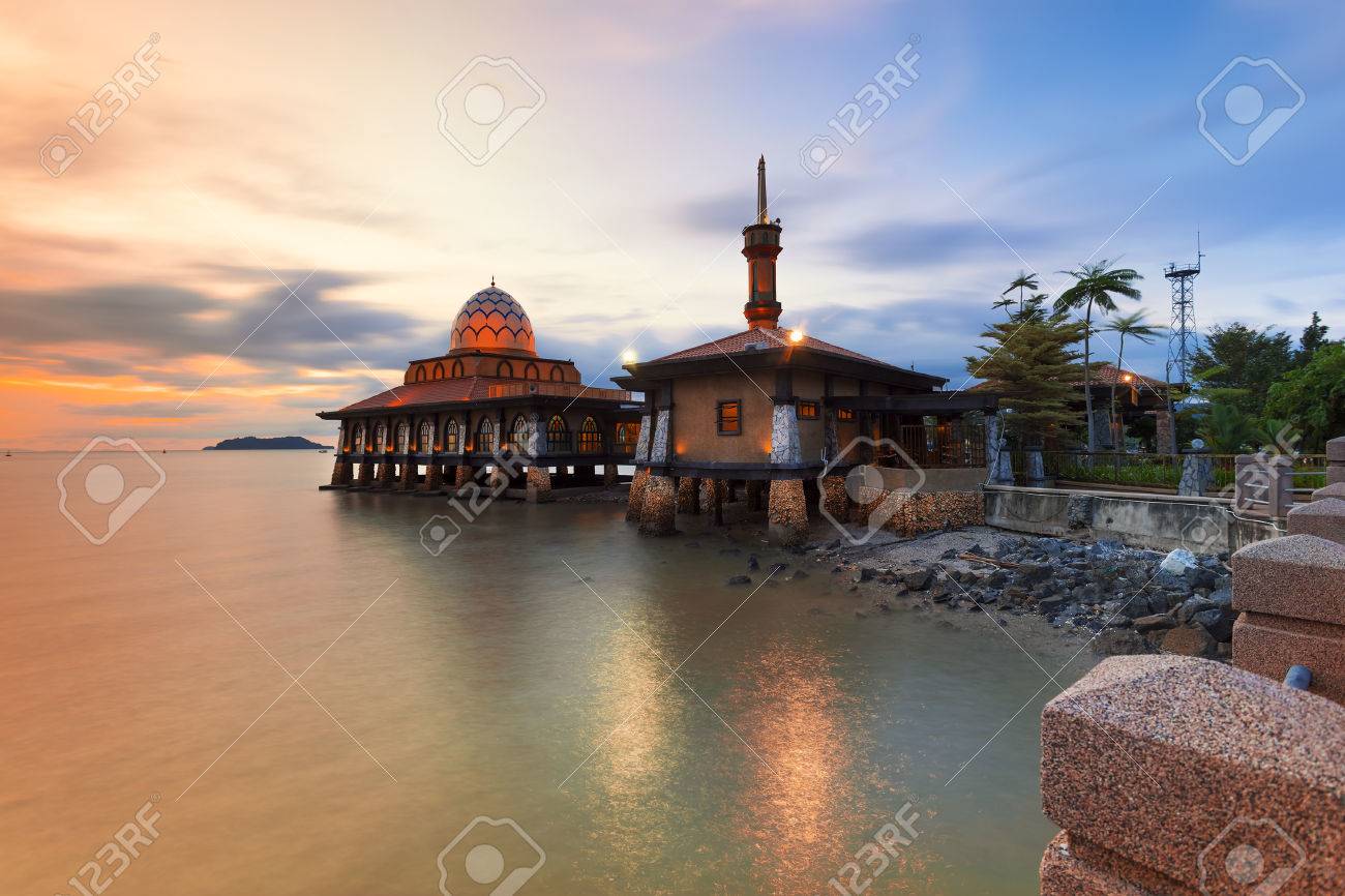 Malaysian Mosque With Sunset Malaysian Mosque Located In Perlis Malaysia Named Masjid Al Hussein Also Called Floating from comps.canstockphoto.com